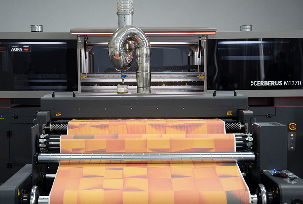 2023年为更好地满足客户个性化定制需求,特别是宽幅要求,引进德国AGFA(阿克发)工业数码设备,产品无需制版,即可快速完成配色、调色、出样、压板与看样,配合数码凹印的匹配技术,在凹版印刷机上可快速还原色彩。可以配合设计师做个性化定制,任何精细的图形、插画、线条,包括文本都可以变成高品质花色,同时不受限于尺寸,还原最初始的美。